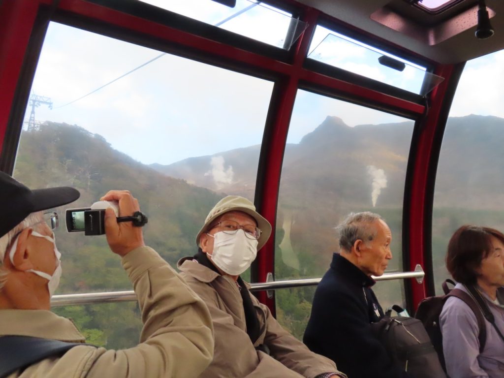 海賊船の終着地、桃源台からロープウェイに乗り大涌谷を目指しました(Nさん撮影)。
