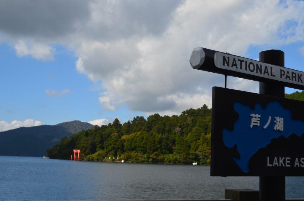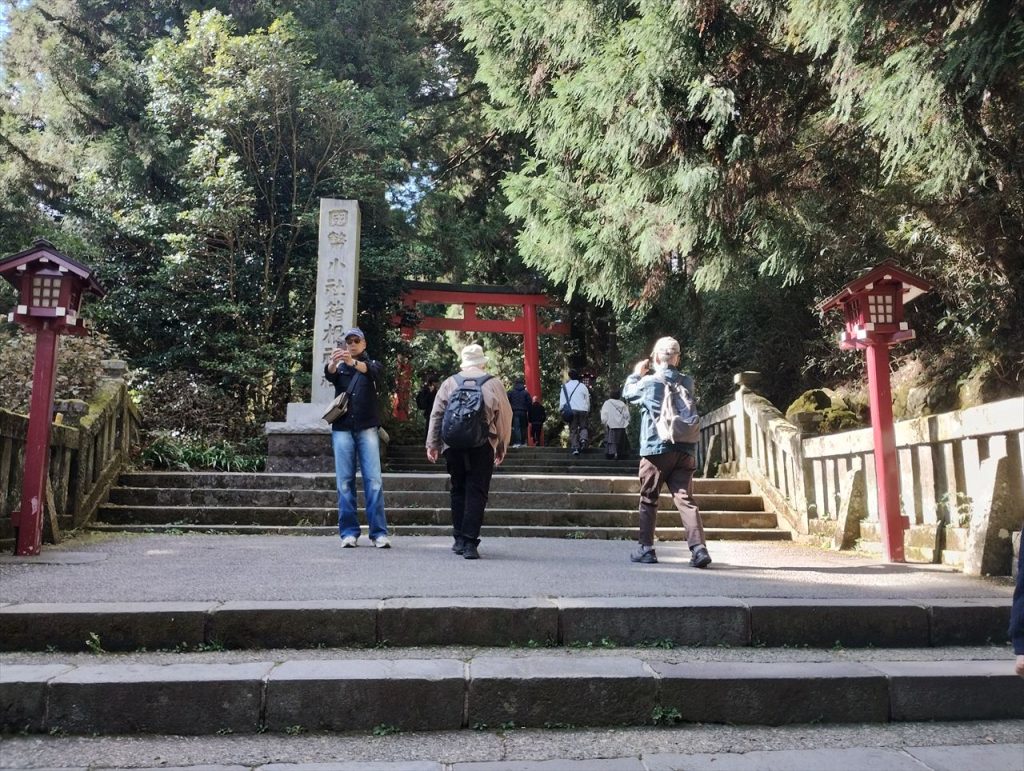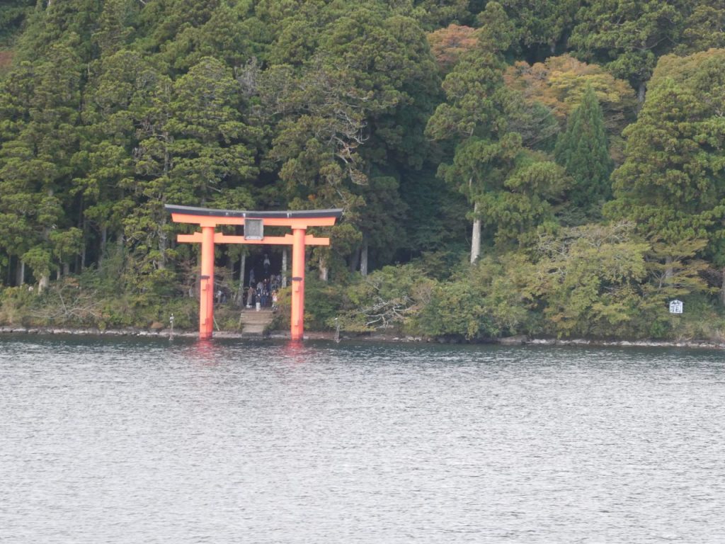 湖畔を歩き、箱根神社に向かいます。