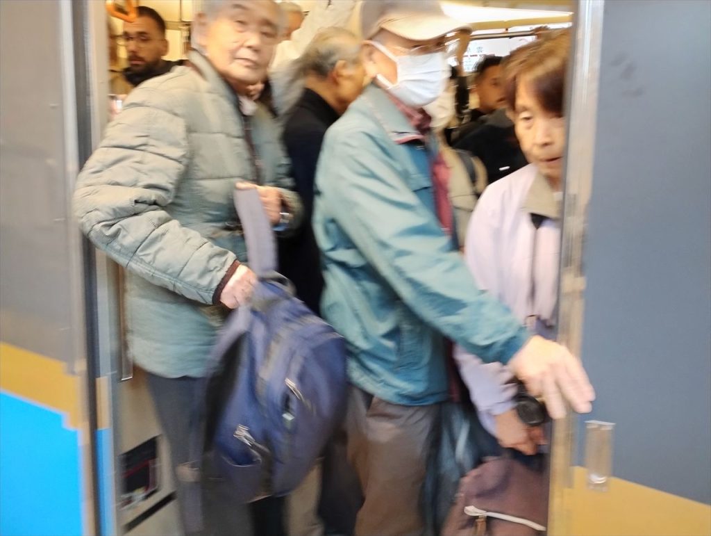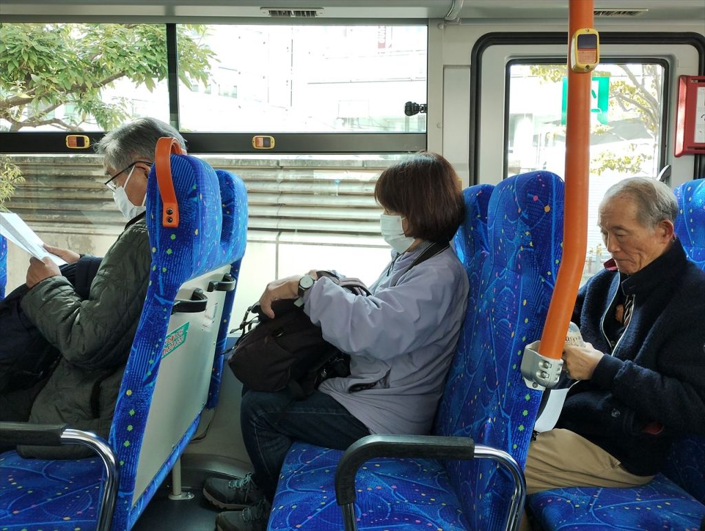 バスに乗り込みました。出発時はすいていましたが、徐々に混んできました。