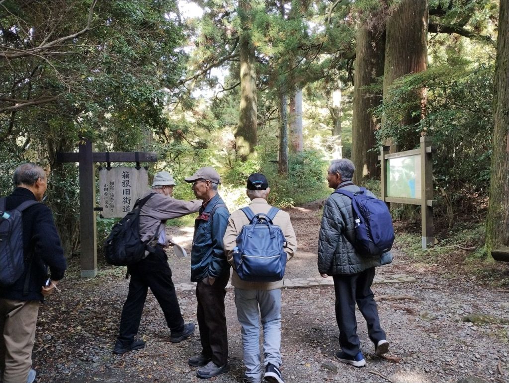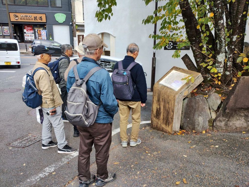 私達街歩きグループの東海道歩きは2018年1月に日本橋からスタートしました。途中、コロナ禍での中断もあり8年近くの長きにわたりましたが、この度の箱根宿到達をもって私達の東海道歩きは終了としました。つまり、この日は東海道歩きの記念すべき最終日でした。皆さん、お疲れ様でした。