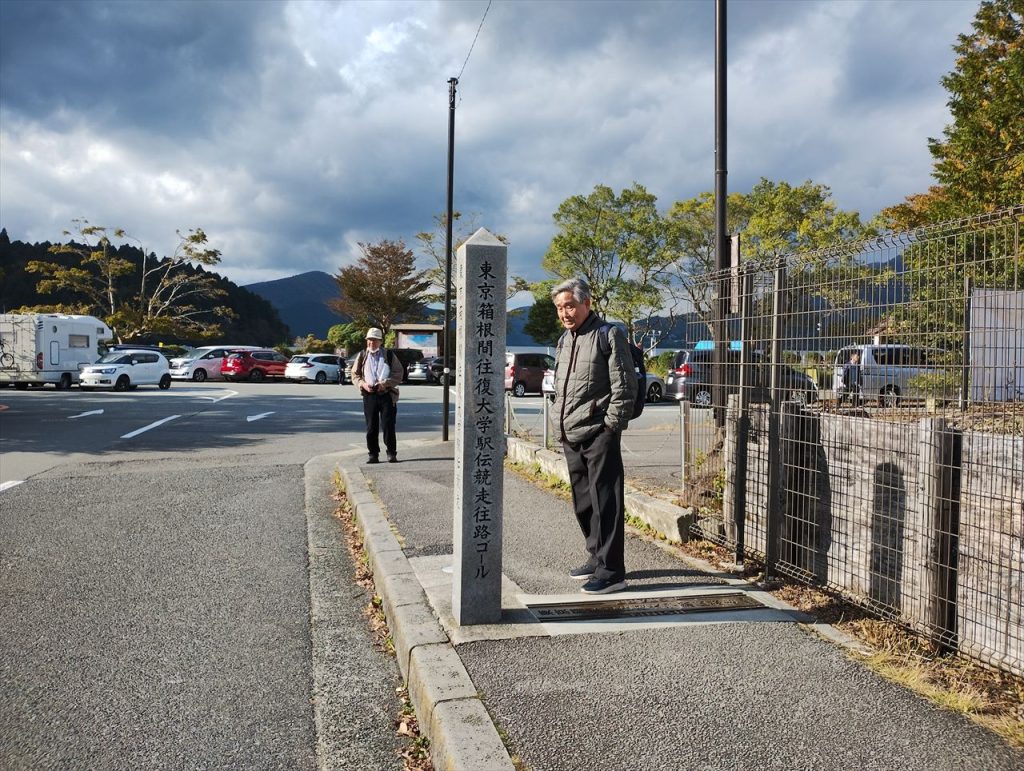 ランチの後、海賊船で桃源台に行くために、箱根町港に向かいました。港の近くに、箱根駅伝の碑があります(Iさん撮影)。