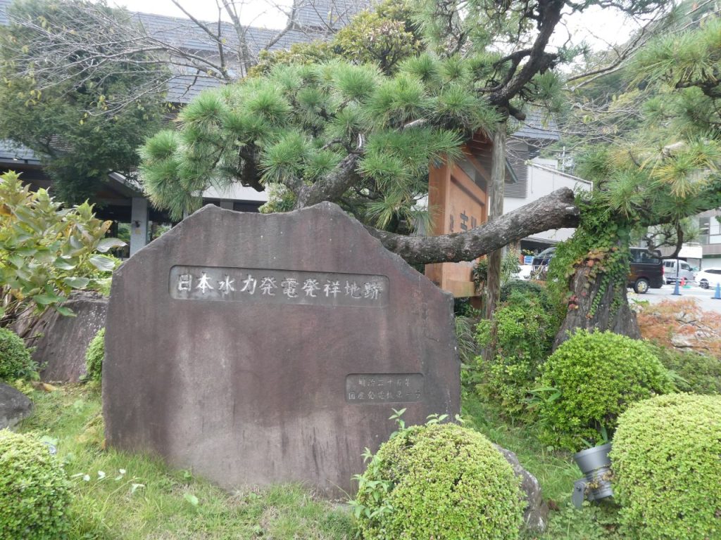 下は、日本水力発電発祥地跡の碑です。初の国産発動機を使った発電設備だったそうです。
