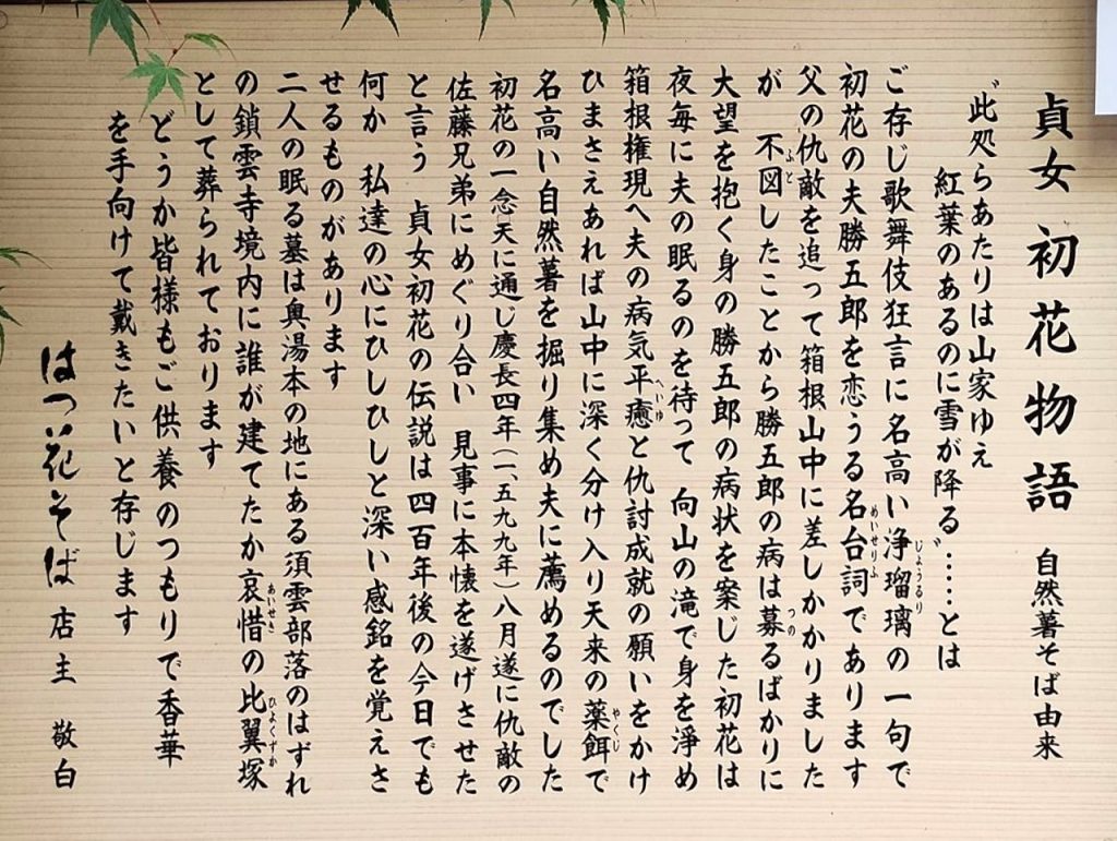 下は、初花物語の説明で、自然薯そばの由来が書かれています。