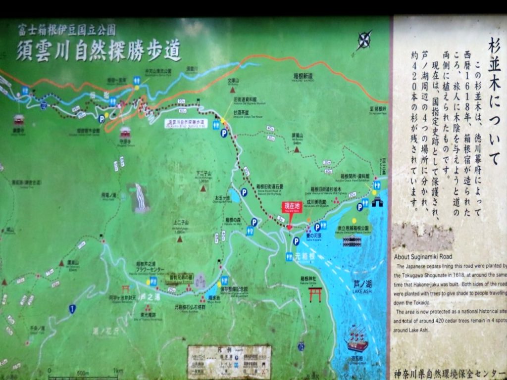この場所には、旧東海道(箱根旧街道)の案内板と、説明板があります。