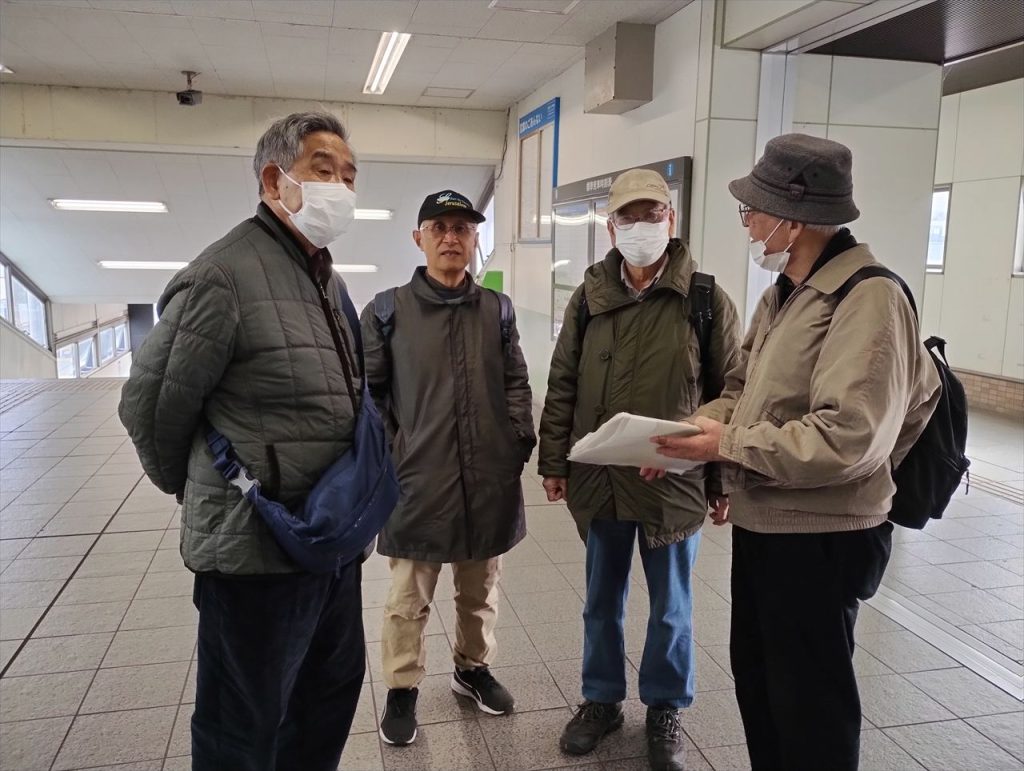 座間駅の改札口周辺で待ち合わせをしました。揃ったところで今日のコースの説明をしています。