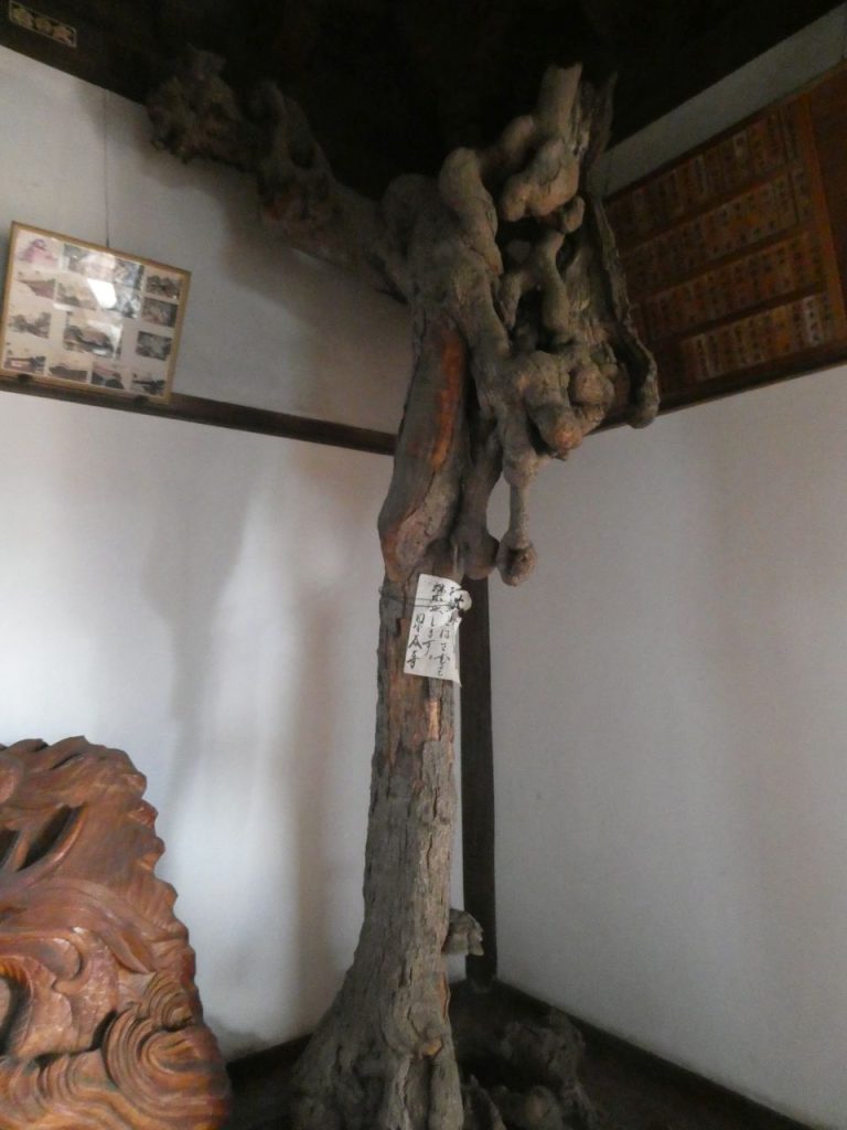 下の写真は、本堂の中にある、七不思議の一つ根下り紅葉の老木のようです(Iさん撮影)。