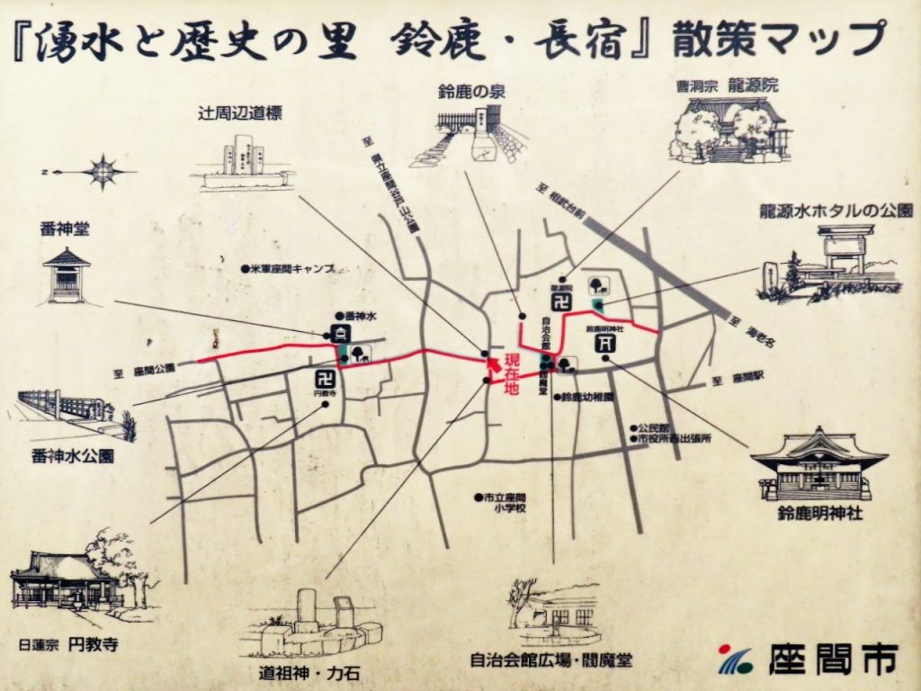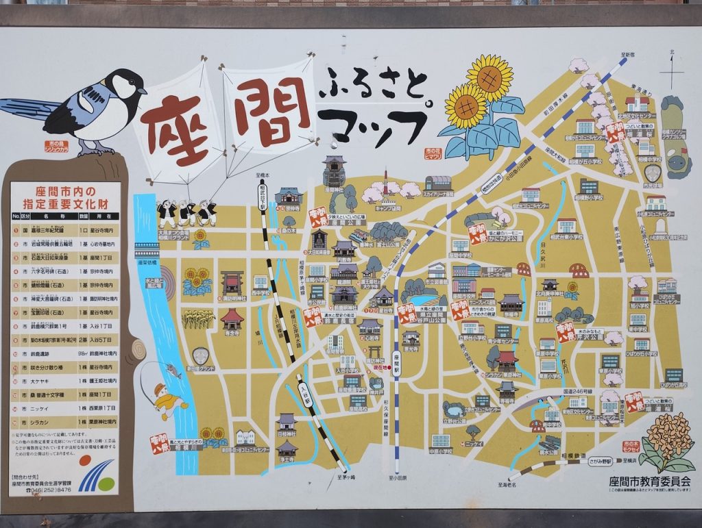 駅を出ると、座間ふるさとマップがありました。この日歩くコースは、このマップ中央から少し左側のあたりです。