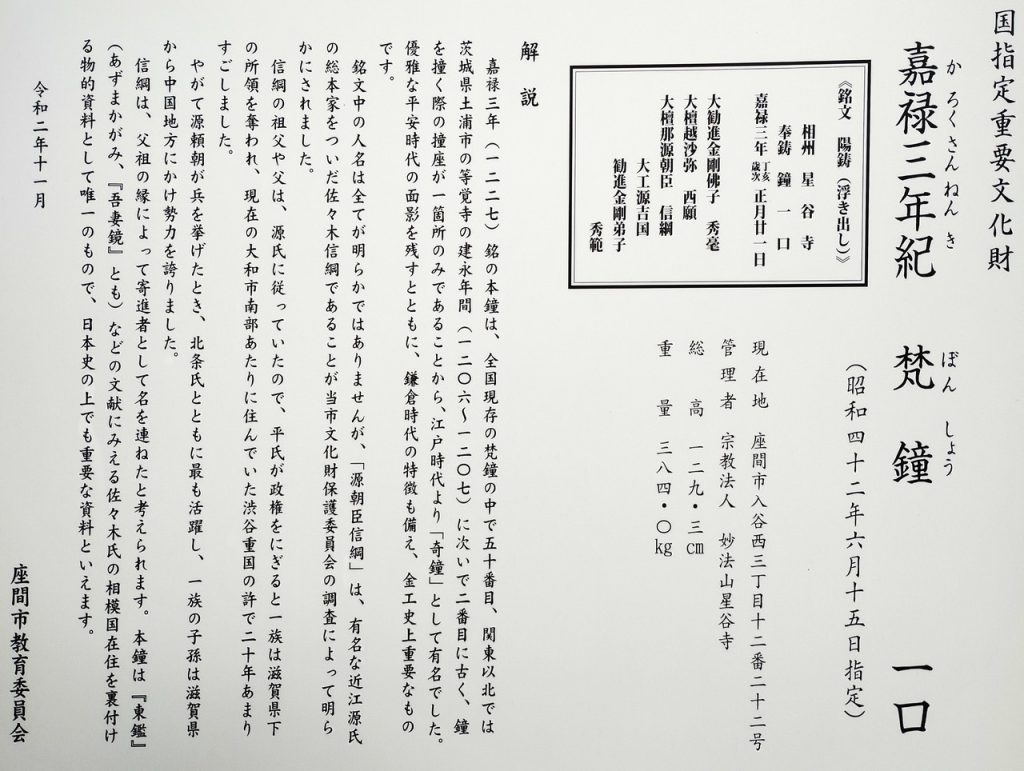 梵鐘の前で、星谷寺全般の説明をしてもらいました。
